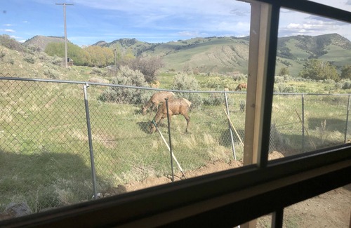 Welcome to our new cabin! The road that connects Gardiner to Yellowstone is now OPEN! We are located just 2 minutes from the North Entrance of Yellowstone! Enjoy beautiful views, wild life and a relaxing stay while being close to restaurants and grocery shopping. We have a security camera on the front door of the property monitoring the outside. We do not have any cameras or surveillance devices in the cabin! We are beyond happy to help you plan your vacation by answering all your questions! We’re all about the views and the outdoors and the wild life, so even though we provide a lot more than a hotel room, we’re not a luxurious accommodation. What makes us unique is that we are bordering Yellowstone!