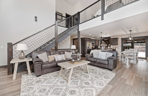 Step inside and be greeted by designer décor, gorgeous accents, and a cozy, inviting atmosphere. With 4 bedrooms, 2 full bathrooms, and a convenient half bath, this cabin comfortably accommodates up to 10 guests. Unwind on the front deck with a drink in hand and take in breathtaking views of Terry Peak’s summit, or relax in the hot tub after a day of exploration. Fire up the natural gas grill for a delicious meal or snuggle up by the fireplace—whatever you choose, comfort is guaranteed.