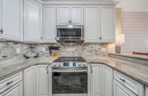 This beachfront condo on the 20th floor of Emerald Isle Resort offers almost 1,200 square feet of luxury coastal living space. The fully equipped kitchen features stainless-steel appliances, granite countertops, and has everything you need to prepare meals for family and friends. The living room offers ample, comfortable seating with breathtaking views of the gulf, a new 55" flat screen television, and access to the unit's private balcony where you can enjoy the sunset. The gulf front master bedroom features a King size bed, television, and ensuite bathroom featuring granite countertops and walk-in shower with bench. The second bedroom also features a King size bed and its own television. There is a second full bathroom with a tub/shower combo. The living room sofa pulls out into a Queen bed, allowing the unit to comfortably sleep 6. For your convenience, there is also has a washing machine and dryer located inside the unit for your use.