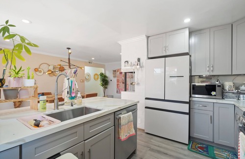 Escape to a whimsical California retreat in peaceful Woodland Hills. This 3-bedroom home is filled with charm, creativity, and comfort—featuring a full kitchen, a cozy living room with a hand-painted sky mural, wellness gear, and an enchanted garden.
