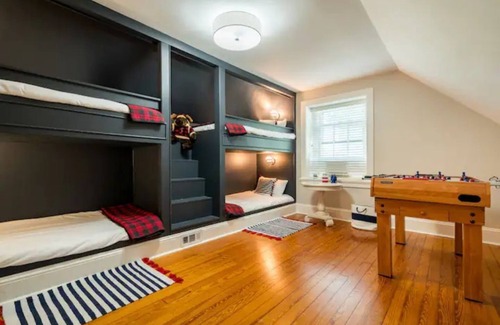 Escape to our historic farm stay, where charm meets modern comfort. Enjoy the gourmet kitchen, unwind on the magnificent patio with a huge fire pit, and indulge in the infrared sauna. Perfect for families and friends, with an adorable kid's playhouse and games. Interact with friendly animals, immerse yourself in serenity, and experience the ultimate getaway near Whiskey Creek Golf Course in Ijamsville. Contact Fingerboard Farm directly for larger gatherings and follow us @FingerboardFarm