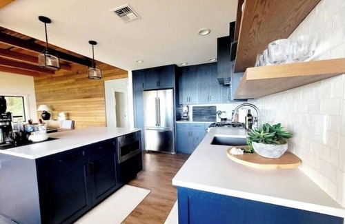 The kitchen is well- stocked for guests to prepare their favorite meals with all new stainless steel appliances.