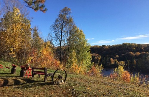 Come enjoy a wonderful getaway in a superb chalet nestled in a beautiful wooded setting surrounded by mountains and overlooking the Rouge river! Less than 1h45 from Montréal, this chalet is perfect for a large/extended family or even a couple families to enjoy together. You can stay and enjoy the chalet, hiking the peaceful woods or canoeing or kayaking on the river, or venture out to golf, ski, or visit any of the many attractions in the greater Mont-Tremblant area!