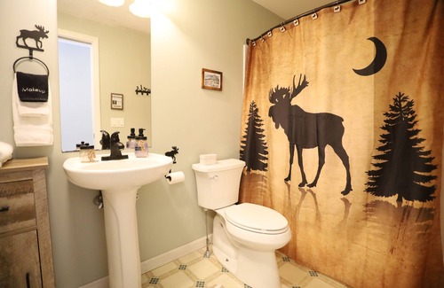 Inside, you'll find a fully equipped kitchen ready for home-cooked meals, and a welcoming living room perfect for movie nights or game time. All three bedrooms are located on the first floor, including a fun bunk room and a primary suite with a King bed and attached bathroom—ensuring everyone gets a restful night's sleep. Enjoy a bonus room in the basement, ideal for playing games or watching movies.