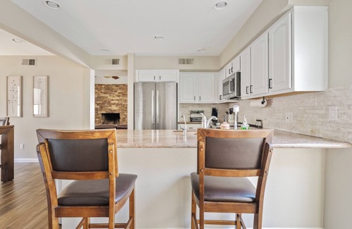 Outside, unwind on the private patio by the stacked stone fireplace—a great spot for relaxing or entertaining. Ideal location near downtown Tempe, Scottsdale, PHX Airport, and popular parks and attractions. Guests also have seasonal access to the community pool for even more relaxation. Book your stay today and enjoy all Tempe has to offer!