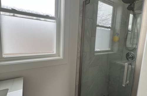 This newly constructed in-law apartment is over our detached garage. The versatile bedroom can be two twin beds or a king. The spacious living area boasts incredible sunlight with an open concept that connects to the kitchen with all new appliances. The bathroom is equipped with a washer and dryer.