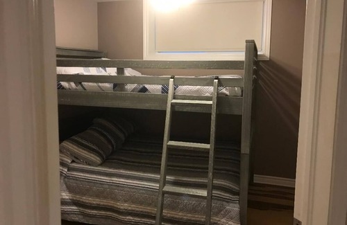 This lake front cottage is a 4 season property on Lake Du La Ferme. There are many winter and summer activities that you and your family can enjoy during your stay, such as ice skating, dog sledding (Escapade Huskimo), snowmobiling, ice fishing, skiing, zip lining, rafting, hiking etc. Comfortably sleeps 8 people. 1 king bed, 1 queen bed and a double bunk bed. We also have a pullout couch that converts to a double bed for additional guests. It's the perfect place to enjoy the sun, swim (no sea weeds), fish, canoe, motor boat and have fun in the nature. There is a boat launch on the other side of the lake for guest who want to bring their motor boats. We also have a paddle boat and a 16ft Canoe you can enjoy. The views from both living rooms are breathtaking. In the evening you can enjoy the fire pit and the night sky is perfect for stargazing. Many ATV and snowmobile trails in the area. You can enjoy a delicious and affordable meal at near by Ladysmith restaurant. local grocery store less than 10 minutes away.
