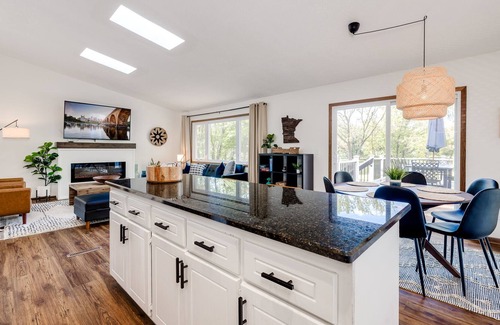 Ever wanted to rent a cabin but with easy access to the amenities of the city? Enjoy 4 bedrooms, 3 bathrooms, 2 car garage, and your own private deck to take in the lake views. If you want to book both sides of the duplex, that would be a total of 8 bedrooms and 6 baths and here is a link: https://www.vrbo.com/2785147
