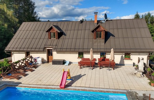 Beautiful, spacious cottage in the national park, surrounded by forests and meadows. It is located 1 km from Strážné. In the summer you can use the swimming pool, slides and trampolines.