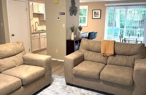 Tucked in a quiet neighborhood, this 3-bed, 2-bath home offers a cozy, well-stocked space for families, small groups, or remote workers looking for comfort and entertainment. A walkout basement transformed into a game lover’s paradise—complete with foosball table, board games, smart TV, and plush seating.