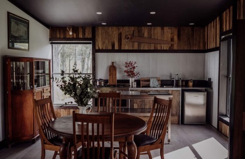 Tucked away in a breathtaking valley in the Upper Hunter, Devon Downs offers a rare opportunity to disconnect from the noise of daily life and immerse yourself in the tranquillity of nature. This fully off-grid, architecturally unique cabin is designed with sustainability and sophistication in mind, blending reclaimed timber and corrugated iron to create a space rich in character and warmth.