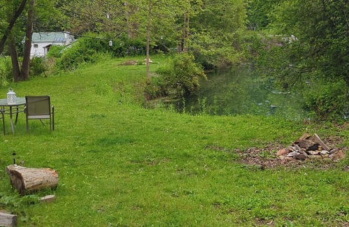 Unplug, unwind, and immerse yourself in nature at our charming off-grid cabin, nestled on a peaceful farmstead beside a crystal-clear spring-fed pond. Wake up to mist rising over the water, sip coffee while birdwatching** (Red Winged Black Birds, kingfishers, and warblers and 17 others I have so far identified!), and let the symphony of frogs lull you to sleep.