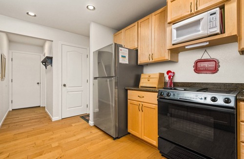 Three comfortable bedrooms are located on the main level. The first includes an en-suite bathroom that also offers shared access for convenience. A second spacious suite features a queen bed, twin-over-full bunk, and its own en-suite bathroom, making it ideal for a family. This suite also connects to a fantastic game room equipped with a foosball table, TV, books, games, and a cozy couch—sure to be a hit with kids and adults alike. The third bedroom on this floor features a comfy queen bed and is perfect for additional guests.