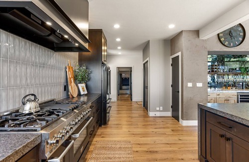 Overall, this gourmet kitchen is designed to be both functional and beautiful, with high-end appliances, and ample seating. It's the perfect space to enjoy brunch prepared by a local chef -ask about recommendations.