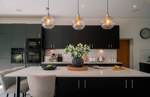 The kitchen is a chef’s dream, with a double oven, induction hob, bean-to-cup coffee machine, dishwasher, and even a wine cellar to keep your favourite bottles perfectly chilled. Whether you’re cooking up a Sunday roast, trying your hand at local produce from nearby farm shops, or hiring in a private chef, this space makes entertaining effortless.