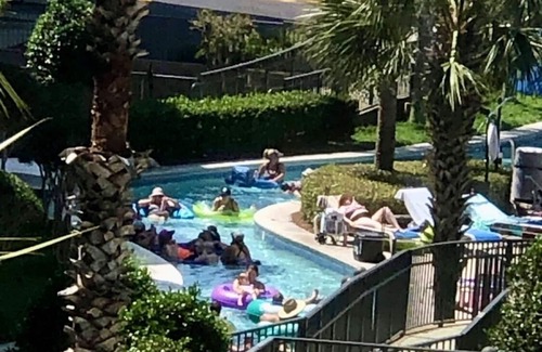 On our grounds has the Largest lazy river, 2 pools, a kiddie pool, an indoor pool, 2 hot tubs, a fitness center, a sauna, a boat launch, fish cleaning, and an ice machine. 2 tennis courts, pickleball, basketball, trailer parking, putting green. Balcony dining table for 6. Fishing pier, and boat slips available for rental.