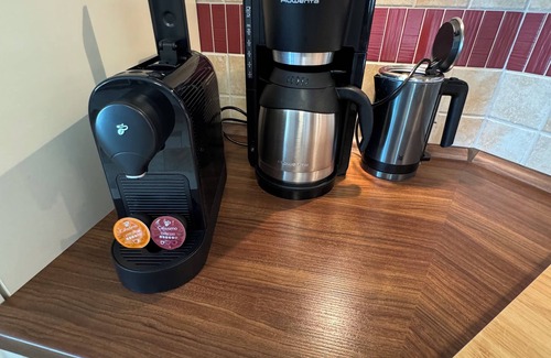The combined, spacious living-kitchen and dining area is equipped with a flat screen TV, Blu-Ray player, iPod docking station, CD and radio. In the kitchen there is a dishwasher, stove, fridge with a small freezer compartment, microwave, coffee machine, kettle, toaster, blender and much more. A large dining table offers enough space for dining, playing and a cozy get-together.