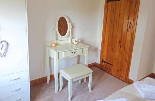 The main bedroom features a light, modern country feel complete with double bed, wardrobe and dressing table. The second bedroom is a cosy relaxing space complete with a small double bed, wardrobe and full length mirror.
