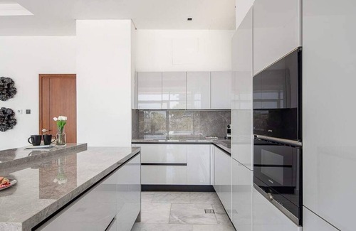 The modern kitchen is a culinary paradise where style meets functionality. This impeccably designed space is equipped with top-of-the-line, high-end appliances that are sure to elevate your cooking experience to a whole new level. Adjacent to the main kitchen is a separate, dirty kitchen, thoughtfully designed to keep mess and clutter out of sight without disrupting the pristine ambiance of the main kitchen.