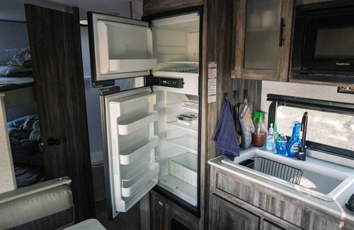 Both pristine campers ensure a comfortable stay, being fully equipped and thoughtfully stocked with bedding, extra blankets, and essential toiletries. The 2020 Wildwood FXS Travel Camper accommodates 4 guests, with 1 queen and 2 twin bunk beds. Meanwhile, the 2021 Kingsport Travel Camper provides sleeping space for 3 guests, with a queen and twin bunk bed. Inside, guests will find well-appointed kitchens, equipped with gas range (2 cooking eyes), microwave, refrigerator/freezer, and a Keurig coffee maker stocked with complimentary coffee and creamer. All necessary cookware, utensils, and dinnerware are provided. Each has a full bathroom, complete with toilet, sink, and shower facilities. High-speed Wi-Fi and USB ports are provided and each unit is climate controlled. The 2021 Kingsport Travel Camper also features a small oven and a 28-inch smart TV.