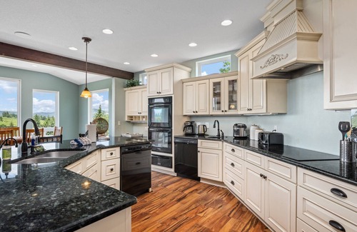 Experience the undeniable magic of the Hood River Valley at this luxurious family estate. This wonderfully positioned, dog-friendly chateau, with private hot tub is loaded with amenities. It enjoys its very own foosball table, ping pong table, an expansive deck with spectacular views of Mt. Adams and the surrounding orchards and vineyards.