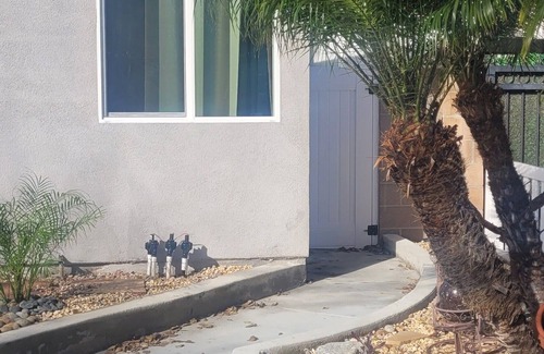 Located in Long Beach, enjoy what this 1-bedroom recently remodeled suite has to offer. This cool property features a living room large with TV, a sofa bed and kitchenette. The bathroom has a large shower with a rain shower head and a washer and dryer. The bedroom features a king bed and large TV. It's perfect for relaxing after a day of exploring. Both rooms have air conditioners and suite has its own separate entrance. Enjoy the shared "extremely chill" back yard with hot tub and koi pond.