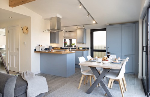 Set in the cliff top village of Freathy, the property has beautiful views out over the fields and towards the sea. A recently built three-bedroom chalet it is situated very close to the coastal footpath, and within walking distance of some truly spectacular beaches. With large views out of vast windows from the open plan kitchen/living room towards a scheduled monument, and three warm comfortable bedrooms this is the perfect place for a family holiday.