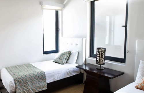 The villa features 4 luxury bedrooms. On the upper floor there are master and guest ensuite bedrooms with shared balcony lounge, providing 180-degree ocean views. The third upper floor guest ensuite bedrooms has European twin beds. The lower level accessed by an internal stairway from the living room includes the fourth guest king size bed, bathroom, TV lounge and private garden sun deck.
