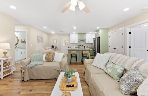 Relaxing and open feel in the main living and kitchen area. All your favorite conveniences such as a Keurig coffee maker, Ninja blender and toaster are all provided. Beautiful new, custom two-toned kitchen cabinets, paired with stylish granite countertops make cooking your favorite meals an enjoyable experience.