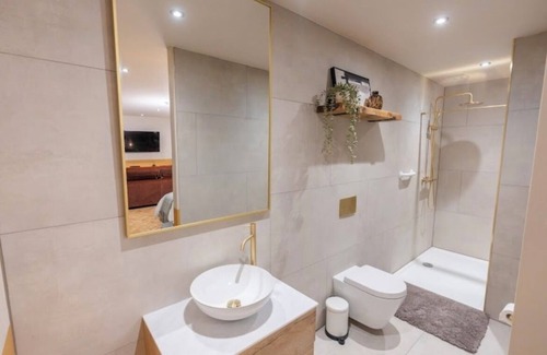 Brand new modern lodge with all the creature comforts. The Lodge is open plan and carefully thought out to make your stay as enjoyable as possible. The sofa bed is a double but i would say only suitable for two children. Great location for both Man Utd/City. The O2 Co op Live G Mex ,M/C City Centre and Universities. Located in a bustling village with plenty going on, award winning restaurants lots of shops cafes and bars. 5 minutes from trains, buses and trams. Parking
