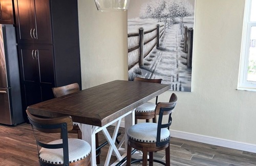 An additional large full-size bathroom featuring a walk-in shower and storage is just off the kitchen. The in-unit laundry room provides guests with high efficiency Samsung stacking washer and dryer.