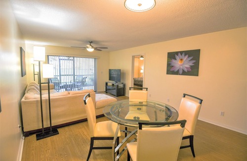 Bright, immaculate, updated 2 bedroom, 2 bathroom condo, in quiet community. First-floor unit. Recently renovated with granite countertops and luxurious cabinets/ bathrooms. The condo is furnished with beautiful, comfortable contemporary decor that will brighten your mood. Central, desirable location that is close to area attractions; within minutes to the ocean/beach, downtown Stuart restaurants, I-95 and Florida Turnpike. The reserved parking spot is conveniently located in front of the unit. Relax with your morning coffee in the large screened patio Extremely serene/relaxing setting. All utilities and high-speed internet included. Has In-suite large capacity washer/dryer included. Relax in the heated pool.