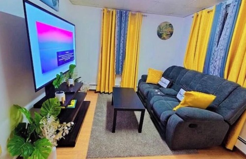 This unit features a cozy 2 queen beds, 1 twin bed, 55" living room TV. It has equipped kitchen,complementary coffee/tea bar, High speed Wi-Fi and laundry room by the entrance