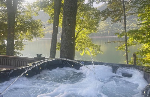 This property is lakefront with a private covered dock and an amazing fire pit area. The view is spectacular with Cherokee National Forest directly across from the lake. This cabin has 2 adjoining bedrooms, a loft, one bath, a covered porch, and a deck. The cabin includes a king-size bed, a queen-size bed, a queen-size sleeper sofa, and two twin beds in the loft area. We are excited to announce that overlooking the lake, we have a brand-new tranquility aqua therapy 6-person hot tub with a lounger seat, led lighting, and Bluetooth. Cabin is spotless and well stocked for cooking and grilling. Full-size stainless-steel appliances, washer and dryer, granite countertops, wireless internet, heating/cooling, kitchen and grilling utensils, propane grill, and plenty of outdoor furniture including new fire pit chairs. Towels and linens are supplied. Snuggle up by the floor-to-ceiling gas log fireplace. Three flat-screen tv's with over 10,000 tv shows and movie options. Large patio area around the fire pit. Enjoy the view and bar area on the deck while grilling. New Vibe Kayak, Vibe Paddleboard, and Ascend Kayak, lifejackets, and a floating Rubber Duckie Mat for the water are available for guests to use. There are 60 stairs to get down to the dock. Head down to your own private dock to watch the perfect sunset. Ample parking space that is flat and level if pulling a boat or ATV trailer. You can rent a boat from one of the local marinas or bring your own boat and tie to the side of the dock during your stay. Two jet ski ramps are available for guests to use if bringing jet skis. New public boat ramp 5 minutes away. Types of fish found on Watauga Lake are: rainbow trout, small and largemouth bass, bluegill, catfish and more. Local grocery stores are 20 minutes away. Fall In the High Country: Woolly Worm Festival Banner Elk, OktoberFest Sugar Mountain, Valle Country Fair Valle Crucis, C&J Corn Maze, and The Orchard at Altapass. Things to do nearby: Appalachian Ski Mountain, Beech Ski Resort, Sugar Mountain Ski Resort, and Hawksnest Snow Tubing. Virginia Creeper Trail, Bristol Motor Speedway, Villa Nove and Watauga Lake Wineries, Downtown King Street in Boone, Elk River Club for the golf enthusiasm and Doe Mountain Recreation Park. Doe Mountain Recreation Park offers more than 50 miles of trails for ATV, UTV, and hiking. Earn points while staying with us with One Key, the new rewards program for booking with family brands Expedia, hotels.com, and VRBO. A maximum of 6 guests is allowed. No smoking or parties, pets are allowed with fee (message owner for restrictions). Come see what lakefront living is all about at Bear Cub Cabin!