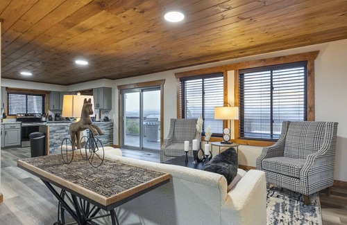 Take in picturesque views from the fire pit, sip your morning coffee from one of the Adirondack chairs, or relax in the hot tub.