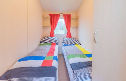 This Static caravan sleeps 6 people, the twin rooms are really only suitable for children as the beds are narrow. However you can push the singles together to make a double.