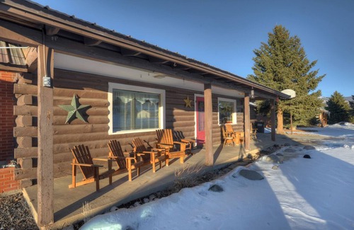 Our 2,900 square foot, five bedroom, two bath log cabin is a short drive from historic downtown Creede. It provides nearby access to the Rio Grande River and countless recreational opportunities. This cozy home features a large flat-screen TV and wood stove in the main living space, a fireplace in the dining room, and a fenced-in backyard for the kiddos to play! Enjoy all the comforts of home, including summertime BBQs on the back patio.