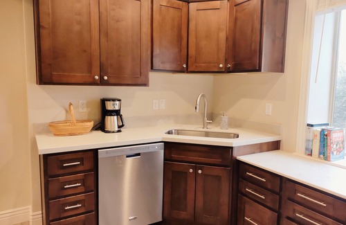 The empty-nester owners occupy the upper story of the house. To enter the apartment, you must walk down 1 flight of 5 stairs.