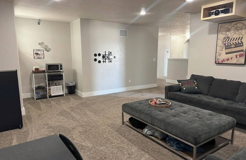 Enjoy all the comforts of home with amenities such as WiFi, air conditioning, heating, a washer and dryer, hair dryer, and iron. Kids will love the main-level toy room, and everyone can gather upstairs for movie nights in the bonus room with a full movie screen setup.