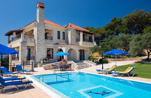 Cozy villa Hermes offers amazing landscape and sea views while relaxing by the large swimming pool. It is located only a 10 min drive from the nearest organized beach and is waiting for you for an unforgettable vacation stay with up to 12 guests family or friends.