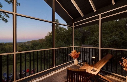 Outdoor Oasis — Four distinct outdoor spaces truly make Far View Cabin special. The main level front deck features seasonal décor, patio seating, and a grill for outdoor culinary pursuits. The rear deck offers a fully screened-in porch with plenty of seating, serving as a quiet refuge for morning coffee or evening wine. The lower deck expands the living space with additional seating and games, before opening up to the hot tub and propane fire pit—the perfect setting for stargazing and evening s’mores.