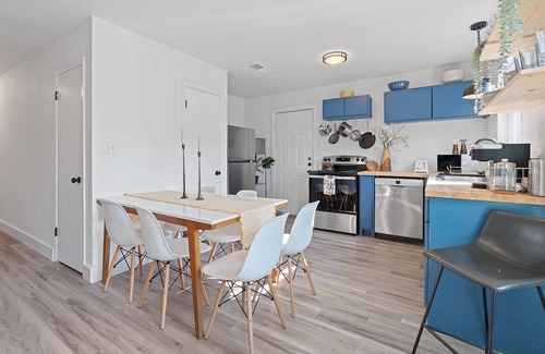 Discover Austin's Farbenfroh, a newly designed 4-bedroom haven for 12 guests! With newly remodeled dining, games & backyard with outdoor furniture, it's an oasis.