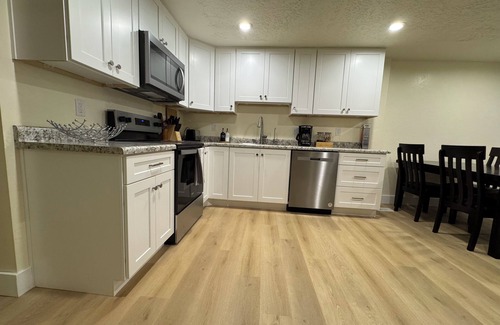 Enjoy both downtown and skiing with this convenient location! 15 minutes from the airport, Midvale, UT is located at the convergence of interstates 15 and 215. Those same interstates will get you quickly to ski resorts and Salt Lake City. This central location makes traveling easy. My home is a great place to stay year round. In the summer, the pool is open and we enjoy sitting under the gazebo eating BBQ while the kids jump in the pool. During the winter months, the slopes are a short and convenient drive. Visiting downtown is very convenient and fun to do all year round. In addition, there are restaurants, a movie theater, sports stadiums, bowling, and bars within a few minutes drive. Bowling, and "a bar named sue" which has free pool, darts, and shuffle board are 2 blocks away. This open concept family friendly apartment has 3 bedrooms with a total of 6 beds (one room has two sets of bunk beds for the kids), a kitchen and a great room with a Foosball table. The kitchen is stocked with cookware, utensils, dining sets, a keurig, coffee mugs, and wine glasses. It also has a full bathroom stocked with towels, shampoo and soap. In addition, guests have access to the wifi. Our guests have left reviews that praise the apartments location because it is very convenient to get to Snowbird, Alta, Brighton, and Solitude: a 25 minute drive. It is also easy to stay here to get downtown. We have a light rail station 1 mile away. The light rail station is walkable, or easy to park and ride downtown. Our past guests have stayed for the many conferences that Salt Lake City holds. Our guests also love the family friendly environment. Kids have a blast playing Foosball, or swimming in the pool. The open concept living space makes it really easy to watch the kids while the adults are relaxing. In addition to that, i respond very quickly and strive to earn a five star review on every visit.