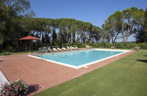 Fattoria Poggioasciolo is an impressive holiday villa in a quiet and secluded hilltop position on a large wine estate. From its elevated setting, guests enjoy sweeping views across the valley below. Surrounded by vineyards and woodlands, this peaceful retreat offers plenty of space both indoors and out - ideal for large families, several families travelling together, or for celebrating weddings and other special occasions.