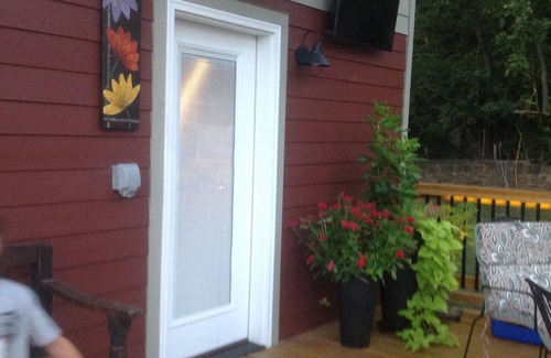 Downtown Studio "Treehouse". Enjoy beautiful views from the 600sq ft. shared deck. Located just steps from the downtown square and just a few more steps will get you to Dickson Street. Great bars, and local restaurants close by. Modern decorated.Washer & Dryer NEW NO Charge you need to bring your own detergent.400 Sq ft. Modern Decorated Studio apartment. The location is great for games business trips or just enjoy the beautiful city of Fayetteville.Easy Access to Downtown or most anywhere in Northwest AR. Close to UofA, Razorback Greenway Trail System, Ozark Mountain Hiking, Scenic rides for Big Bikes. We only do airbnb and vrbo. We don't do Craigslist.