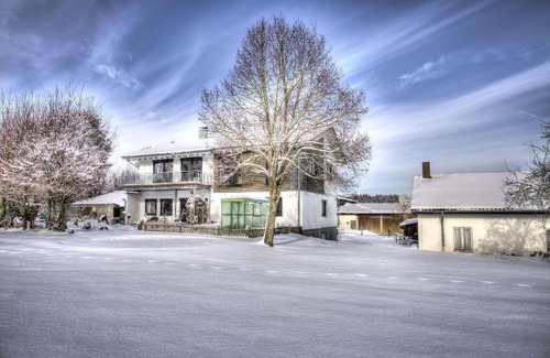 Unsere neu erbaute Ferienwohnung befindet sich im 2. Stockwerk unseres Hauses. Das schöne Appartement mit hohen Räumen ist ca. 70 qm groß. Der Wohn- und Essbereich bietet großen Komfort mit einer hochwertigen Einbauküche, Kaffeemaschine, Flachbildschirm und Fußbodenheizung. Die Ferienwohnung verfügt über zwei Schlafzimmer (1 Doppelbett und 2 Einzelbetten). Die gemütliche Einrichtung lädt zum Entspannen ein. An der Südseite unserer Ferienwohnung befindet sich ein großzügiger Balkon mit einzigartiger Aussicht. Für die Kinder gibt es im Garten eine große Spielwiese mit Spielplatz und großes Trampolin (5,00m). Die Spielwiese schließt direkt an das Naturschutzgebiet 'Riedbachtal' an.