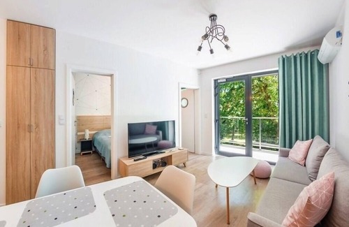 Located in Ustronie Morskie, this welcoming apartment brings it all within your reach. Thanks to the convenient onsite parking, you can either leave your vehicle behind and let your feet make short work of the 11-minute walk to Municipal Sports and Recreation Center, or easily tackle the 23-minute drive to Kołobrzeg Beach.