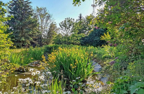 The 40 square metre holiday apartment for 2 to max. 3 people with separate access is located on the ground floor of the owner's house on the 3600 square metre residential property on the outskirts of the village. It is equipped with a combined living/bedroom (sofa bed, sitting area, double bed, flat-screen TV, tiled stove), a separate kitchen (dining area, electric cooker with oven, fridge, microwave, various kitchen appliances), a bathroom (shower, bathtub, WC) and electric heating (night storage heater). There is a furnished terrace with barbecue facilities, storage space for bicycles and a car parking space. WLAN is also available. The total price includes water, energy and final cleaning. Bed linen and towels can be brought along or rented on site.