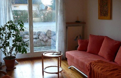 Behindertengerechte Nichtraucher-Ferienwohnung, 45qm, für 2-4 Personen, 1 Wohn-Schlafraum, voll ausgestattete Küche, Badezimmer mit Dusche und WC, Terrasse.