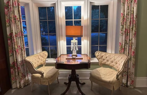 This fully renovated 5-bedroom farmhouse (3 with ensuite baths) sits on 30 acres of privacy, tucked down a leafy 100-metre driveway. Guests have exclusive use of the property, including a pool, BBQ, two spacious reception rooms with cozy reading areas, and scenic walking trails. A self-serve continental breakfast is provided.